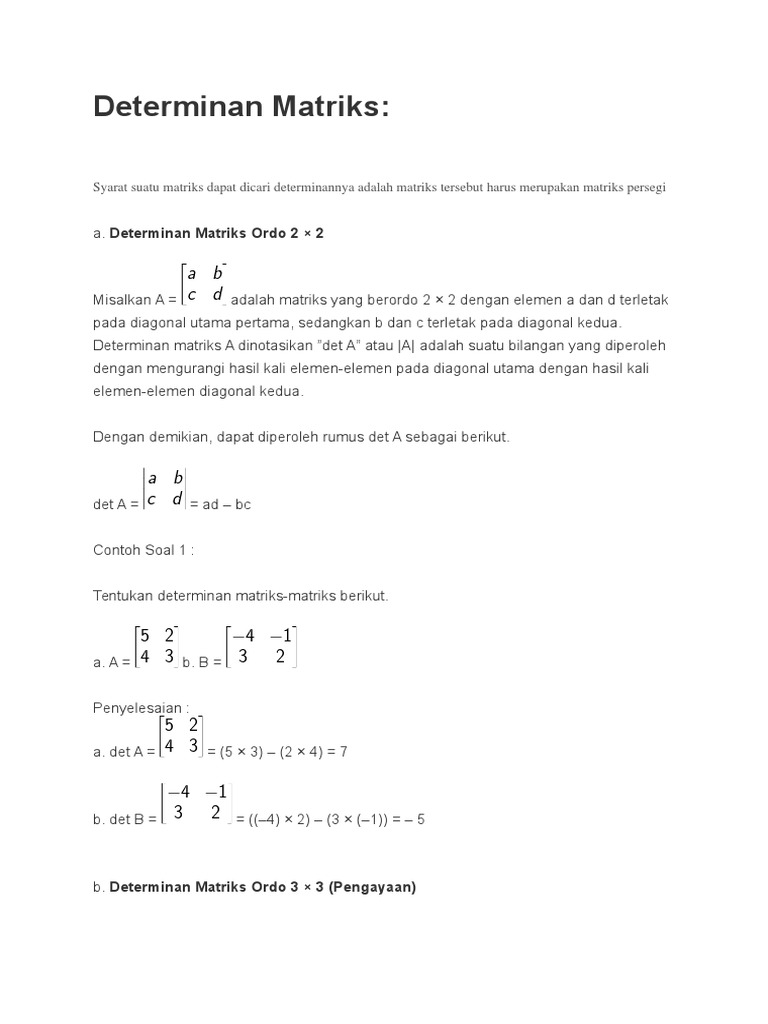 Contoh soal determinan matriks ordo 3x3 dan pembahasannya. Contoh soal dan pembahasan operasi matriks yang paling sering keluar dalam ujian dan tes masuk perguruan tinggi bagi yang mengambil ipa tentu saja harus kalian pahami dengan baik dan benar sebisa mungkin semuanya di lahap sehingga sangat mudah dan cepat dalam menyelesaikan semua soal tentu saja. Makalah invers matriks 2x2 dan 3x3 contoh soal jawaban penjelasannya contoh matriks adjoin determinan materi pembelajaran matriks ordo. Berikut adalah detail contoh soal determinan matriks ordo 3x3. Determinan matriks ordo 2 2 3 3 nxn dan contoh soalnya by azzahra rahmah posted on january 18 2020 rumus co id makalah materi definisi pengertian sifa sifat rumus dan contoh soal determinan matriks ordo 2 2 ordo 3 3 ordo nxn dimana pada kesempatan sebelumnya kita juga telah membahas tentang invers matriks untuk lebih jelasnya simaklah penjelasan dibawah ini.