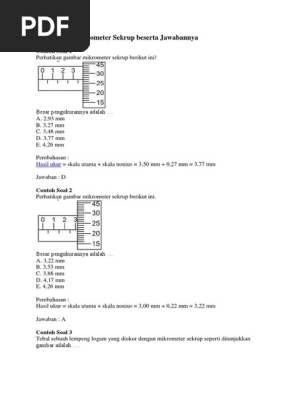 Contoh Soal Jangka Sorong Dan Mikrometer Sekrup Beserta Jawabannya