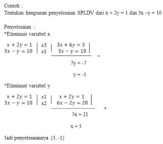 Berapakah nilai dari x dan y. Metode eliminasi merupakan suatu cara menyelesaikan persamaan linear dengan cara menghilangkan salah satu variabel dari variabel yang ada. Untuk memantapkan pemahaman tentang materi ini berikut disajikan sejumlah soal beserta pembahasannya yang super lengkap dengan tipe berupa soal pemahaman dan soal cerita aplikasi. Dan variabel yang akan dihilangkan haruslah variabel yang memiliki koefisien yang sama jadi jika variabel tersebut tidak memiliki koefisien yang sama kita samakan dulu koefisiennya.