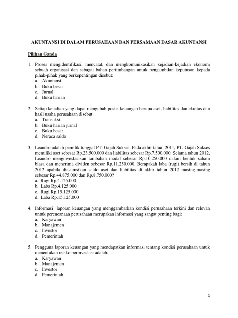 Contoh Soal Rekonsiliasi Bank Pilihan Ganda