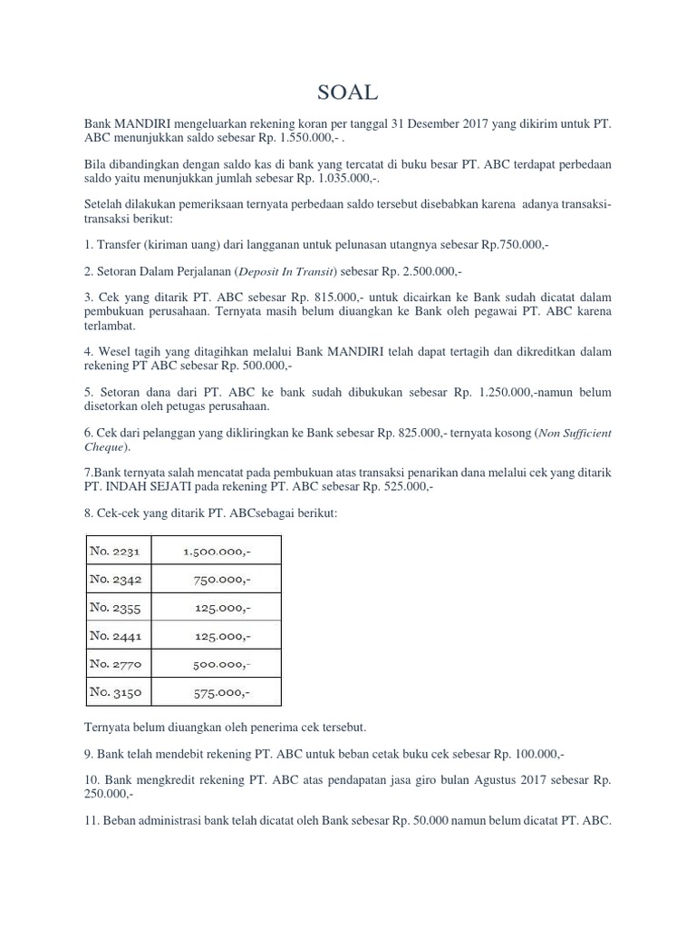 Contoh Soal Rekonsiliasi Bank Pt Abc