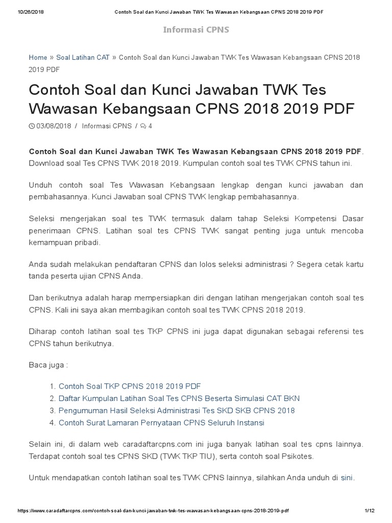 Contoh soal tes wawasan kebangsaan twk cpns 2020 dan jawabannya. Banyak peserta tes yang gagal pada tes wawasan. Berikut adalah contoh kumpulan soal cpns dan jawabannya. 1 juni adalah hr lahirnya pancasila trimakasih atas masuk.
