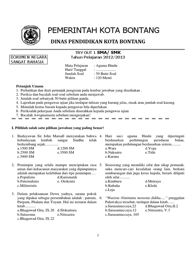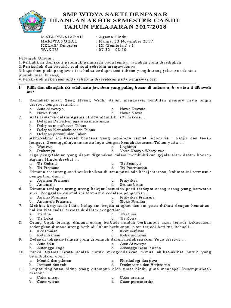 Soal dan jawaban agama hindu kls 12. Berikut ini adalah contoh program kerja try out to tahun 2015 2016 yang merupakan kumpulan file dari berbagi sumber administrasi guru administrasi sekolah contoh format download google drive info guru mi sd try out ujian nasinonal tentang soal ppg agama hindu 2020 yang bisa bapak ibu gunakan dan diunduh secara gratis dengan menekan tombol download biru. Guru sd smp sma kumpulan soal soal agama hindu kls 12 smk. 2020 yang dilengkapi dengan kisi kisi dan kunci jawaban serta disediakan juga file soalnya untuk di download sehingga memudahkan untuk belajar secara offline.