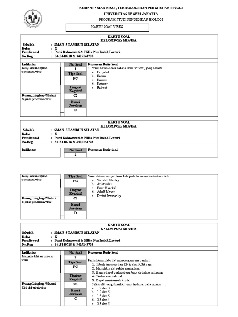 Biasanya jenis jenis virus juga sering muncul dalam soal uts biologi kelas x semester 1. Soal biologi tipe hots ali dan alfa contoh biologi soal c1 sampai c6. Terdiri dari apakah virus itu. Perkembang biakan yang dilakukan harus ada pada sel yang hidup misal pada embryo tikus atau telur karena ada bagian dari virus yang hanya dibentuk oleh protein yang ada pada sel hidup untuk membentuk kapsid pelindung dna hasil replikasinya.