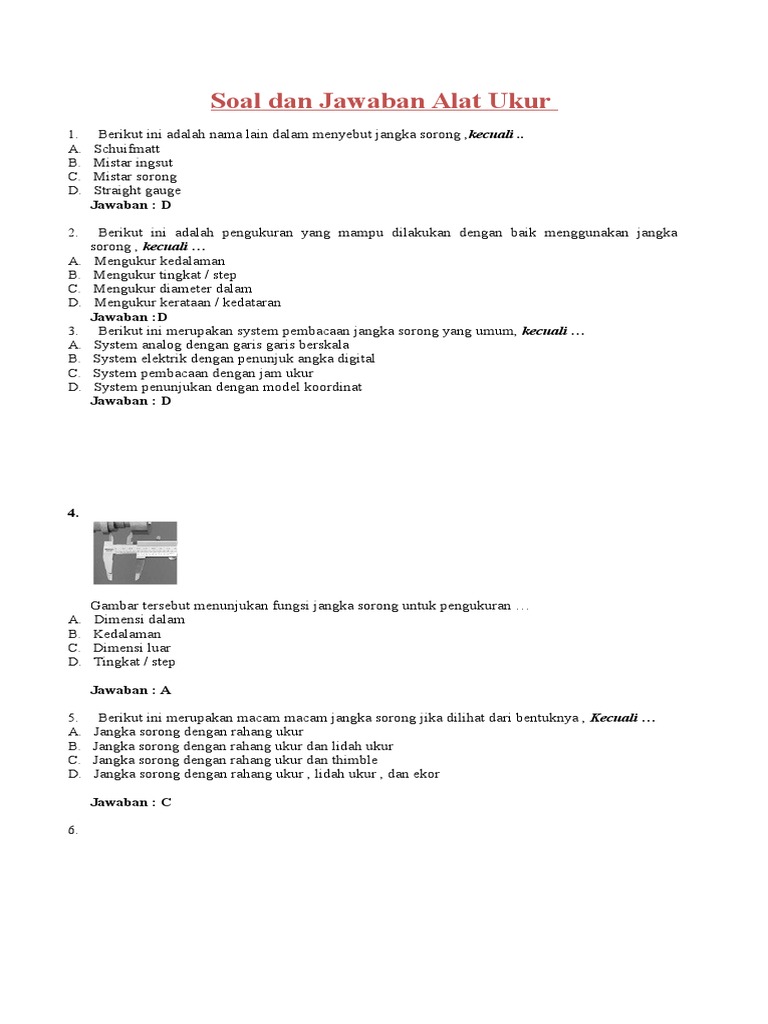 Contoh soal jangka sorong dan jawabannya biar anda lebih paham tentang jangka sorong di bawah ini sudah kami kumpulkan beberapa contoh soal jangka sorong beserta jawaban dan pembahasannya. Terdapat dua pasang rahang yakni sepasang rahang luar atau rahang bawah untuk mengukur jarak pengukur utama dan sepasang rahang dalam atau rahang atas untuk mengukur diameter dalam contohnya mengukur diameter dalam pada cincin. Besarnya hasil pengukuran adalah a. Inilah pembahasan selengkapnya mengenai contoh soal jangka sorong dan jawabannya.