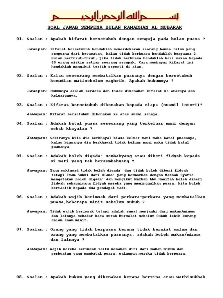 Setiap pesakit dan pengamal perubatan perlu mempelajari agar ibadah yang mulia ini tidak berlalu begitu sahaja. Koleksi soal jawab sekitar ibadah puasa. Semua hak dilindungi milik website soal jawab tentang islam 1997 2020. Soalan 101 hingga 118.