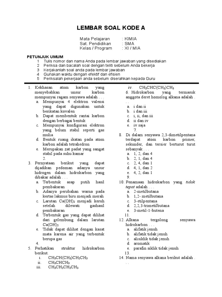 2 metil pentana. Soal latihan hidrokarbon pilgan kelas 11 pdf bagian 1 dalam rangka penyelenggaraan pembelajara jarak jauh atau untuk mendalami materi kimia hidrokarbon berikut ini adalah soal dan pembahasan hidrokarbon untuk kelas xi semester ganjil. Soal kimia kelas xi hidrokarbon unknown 3 56 am. Soal latihan hidrokarbon pilgan kelas 11 pdf bagian 1.