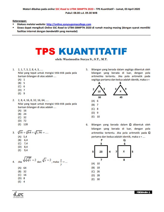 Soal pola bilangan selalu keluar pada ujian utbk sbmptn setiap tahunnya. Edu vid 19 921 views. Soal persiapan tps utbk 2020 materi peluang tps pengetahuan kuantitatif duration. Soal soal deret angka ini harusnya merupakan soal yang tergolong mudah karna tes ini tidak membutuhkan rumus ataupun hapalan hanya menggunakan logika saja.