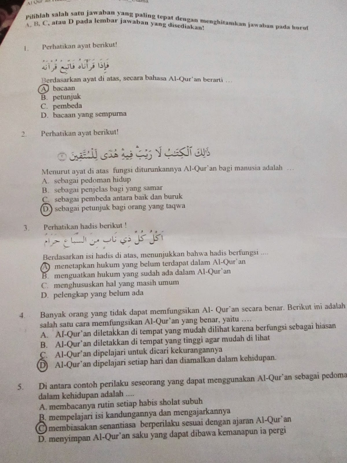 2 membangkitkan kembali motivasi dan semangat guru qur an hadis fiqih dan sejarah kebudayaan. Mungkin soal uambn qur an hadits ma 2018 bisa menjadi salahsatu pilihan anda untuk digunakan sebagai bahan latihan bagi siswa i anda. Soal uambn al qur an hadits ma 2018. Latihan soal uambn al qur an hadits ma 2020 dan jawabannya pdf jumlah keseluruhan soal adalah 50 soal pilihan ganda dengan jawaban yang sudah tertera di bawah per masing masing soal terkait.
