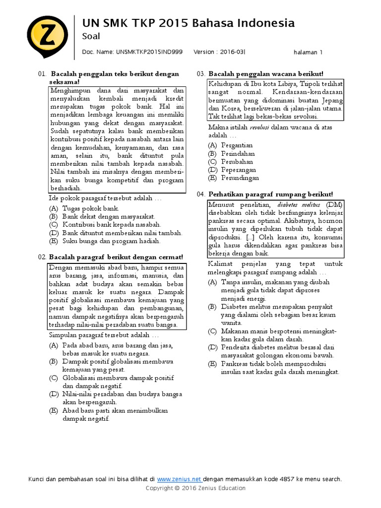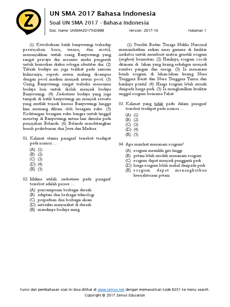 Soal Un Bahasa Indonesia Zenius