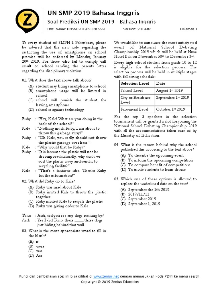 Cek juga paket pelajaran dari bimbel online zenius education. Soal un english smp. Prediksi soal un smp. Soal un smp 2020 pdf.