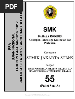 Soal unbk bahasa inggris smk 2018 pdf. Soal try out ujian nasional unbk unkp bahasa inggris gunadarma 2019 pdf dan to dki jakarta 2019 beberapa waktu yang lalu universitas gunadarma mengadakan simulasi ujian nasional berbasis komputer unbk untuk tingkat sma smk tahun 2018 2019. Sudah beberapa soal matematika ujian nasional sma 2019 dan soal sbmptn saintek kami bagikan. Dan dalam kesempatan kali ini akan saya share kumpulan soal try out to un gunadarma 2019 silahkan download. Kalian dapat memiliki file pdf untuk persiapan usbn dan unbk di tahun 2020 2021.