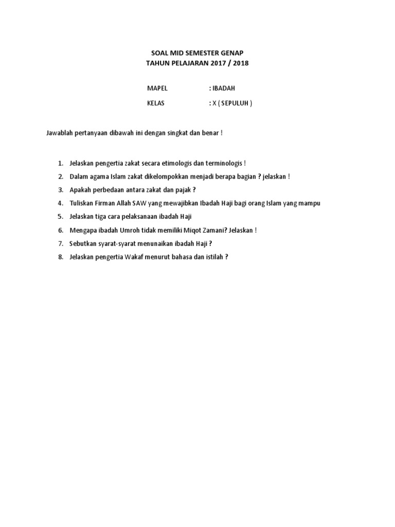 Soal wakaf lengkap jawaban. Hal lain yang membedakan wakaf dari pajak dan zakat adalah soal takaran kadar serta waktu penyerahan. Soal pilihan ganda dan jawaban hikmah ibadah haji berikut ini soal lks pg pai pendidikan agama islam kurikulum 2013 beserta kunci jawabannya untuk sma smk ma sederajat. Berbeda dengan amalan amalan seperti shalat zakat puasa haji dll yang pahalanya akan terputus ketika kita meninggal dunia.
