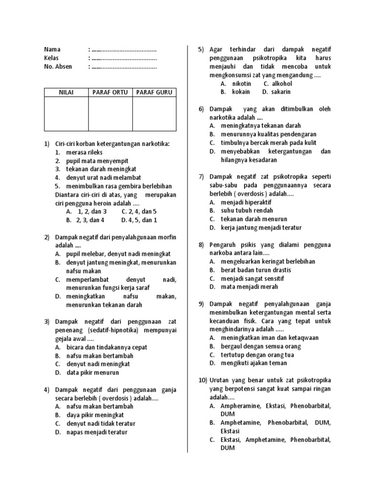Soal Zat Adiktif Dan Psikotropika Smp Kelas 8
