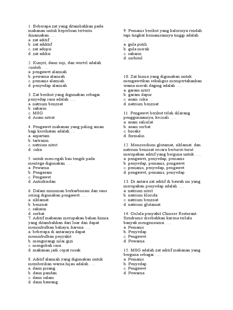 Soal Zat Aditif Dan Adiktif Kelas 8 Pdf
