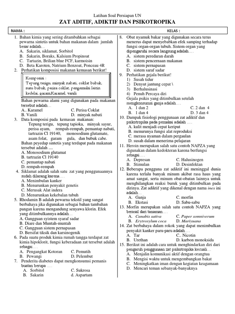 Zat aditif pada makanan dapat dibedakan menjadi dua yaitu zat aditif alami dan zat aditif buatan. Mempengaruhi proses berpikir. Kumpulan dokumen file guru modul guru pembelajar slb tk sd smp sma smk lengkap 2016. Soal dan pembahasan zat adiktif dan psikotropika berikut ini adalah kisi kisi soal pretest ppg 2018 yang merupakan kumpulan file dari berbagi sumber kisi kisi ppg tentang soal dan pembahasan zat adiktif dan psikotropika yang bisa bapak ibu gunakan dan diunduh secara gratis dengan menekan tombol download biru dibawah ini.