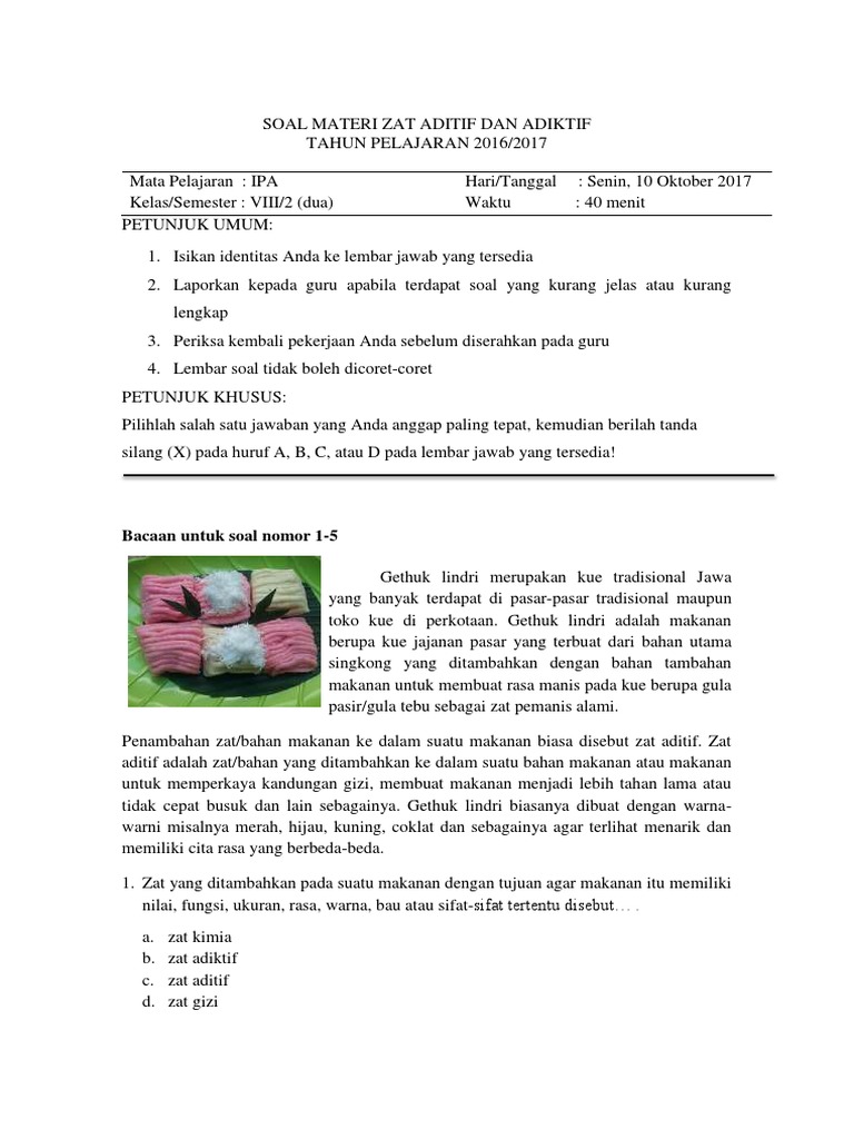 Soal Zat Aditif Dan Zat Adiktif